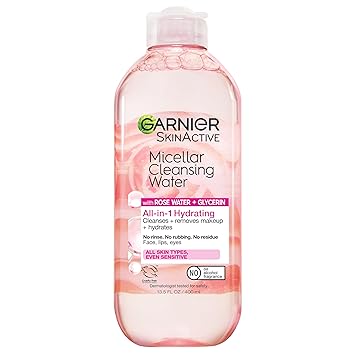 Garnier Micellar Water with Rose Water and Glycerin, Hydrating Facial Cleanser & Makeup Remover, For All Skin Types, Vegan, Cruelty Free, 13.5 Fl Oz (400mL), 1 Count