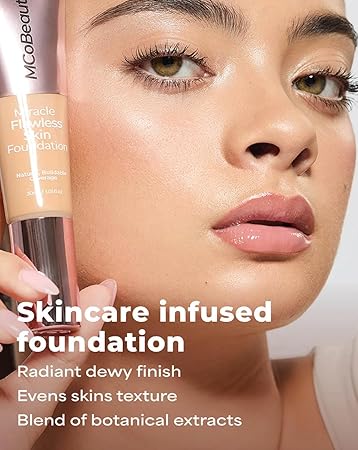 MCoBeauty Miracle Flawless Skin Foundation - Honey, 2-in-1 Skincare-Infused Foundation, Medium Coverage, Vegan, Cruelty Free Cosmetics