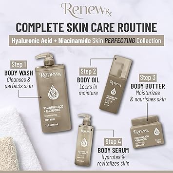 Hyaluronic Acid + Niacinamide Moisturizing Body Oil - Deep Hydration & Skin Care, Skin Perfecting Vegan Skincare, 10 fl oz