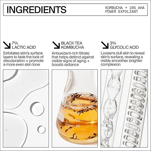Youth To The People Kombucha + 10% AHA Power Exfoliant (4 fl oz), Overnight Resurfacing Peel, Helps Fade Discoloration + Smooth Skin Texture, Lactic + Glycolic Acid, Fragrance-free, Vegan