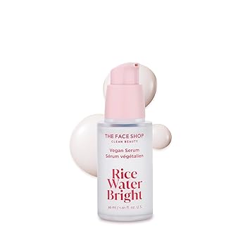 - The Face Shop Rice Water Bright Vegan Serum - Targets Uneven Skin Tone & Dryness, Brightening, Nourishing, Hydrating Face Serum - Rice Water, Hyaluronic Acid, Niacinamide Serum - Korean Skin Care