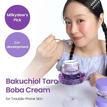 - CO-DEVELOPED WITH MILKYDEW-BAKUCHIOL TARO BOBA CREAM was created based on fan requests from Milkydew! Bakuchiol is a plant-based alternative to retinol—gentler on the skin, yet effective regulating sebum production.
