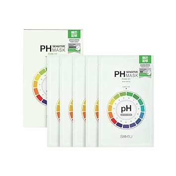 SAM’U PH Sensitive Pore Fit Face Mask - Pore Tightening & Exfoliating Vegan Sheet Mask with AHA, BHA, PHA, LHA, Texture Refining, Travel-Friendly Korean Skincare (5 Sheets)