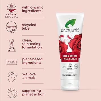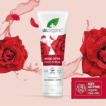 Dr. Organic Rose Otto Face Scrub | Deep Exfoliation, Aids in Healthy Aging, Promotes Radiant Glowy Skin, Vegan, Certified Organic, Natural, 125 mL / 4.2 fl oz
