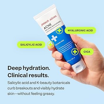Peach Slices - Acne Oil-Free Moisturizer (2.82 oz) - 2% Salicylic Acid Acne Treatment - Clear & Prevent Breakouts - Hyaluronic Acid, Niacinamide, Cica - Vegan, Cruelty Free, Korean Skin Care & Beauty