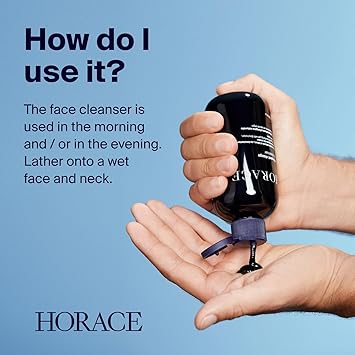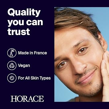HORACE Purifying Cleanser is specially formulated for men who value effective skincare. This foaming facial cleaner purifies and sanitises your skin without causing dryness. Made in France with 98.7% naturally-derived ingredients such as aloe vera, zinc PCA, activated charcoal and plant-derived glycerine, it is vegan and free from fragrances, parabens, sulphates and mineral oils. It hydrates your skin while removing excess sebum and other impurities, preventing imperfections and keeping your skin matte and clear. This makes it suitable for all skin types, whether sensitive, oily, dry, or combination. The face wash is used in the morning and/or in the evening. Lather onto a wet face and neck. For a thorough cleansing, we recommend applying a small amount on your skin in gentle, circular motions for a full minute, and paying particular attention to the oiliest parts of the face: forehead, sides of the nose, and chin. Rinse off afterwards. Embrace simplicity and efficacy with HORACE.