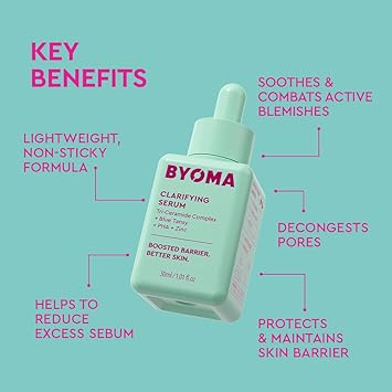 BYOMA Clarifying Serum - Barrier Repair Serum - Clarifying Facial Serum for Acne Prone Skin - Calming Face Serum with Ceramides, Blue Tansy, PHA & Zinc - Balanced & Healthy Skin - 1.01 fl. oz