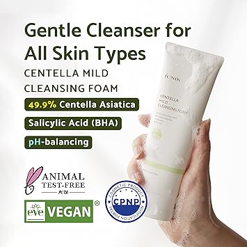 IUNIK Centella Mild Facial Foaming Cleanser - Non-stripping Sub-Acid w/Centella Asiatica 49% Moisturizing pH Balancing for Oily Dry Senstivie Acne-prone skin Vegan Korean Skincare
