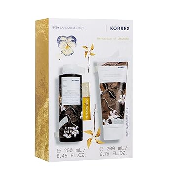 Elevate your body care ritual with the KORRES Jasmine Body Care Set, a thoughtfully crafted 2 piece gift set designed for anyone who enjoys indulgent, floral infused self care. This duo features a Jasmine Renewing Body Cleanser (250 ml) and Jasmine Body Smoothing Milk (200 ml), each enriched with the beloved scent of blooming jasmine. The body cleanser transforms into a creamy lather that gently refreshes the skin, while helping maintain its natural moisture balance for a smooth, comfortable finish. Complementing this is the smoothing milk, a silky moisturizer that absorbs easily and helps deliver lasting hydration with a lightweight feel. Both products are inspired by botanical elements and formulated for daily use on all skin types, offering a balanced experience that supports soft, nourished skin. Whether you're treating yourself or searching for an elegant gift for someone special, this set offers a sensorial escape into a world of gentle floral notes and everyday indulgence. Created with care, the set is vegan and suitable for both men and women who appreciate effective, fragrance forward body care.