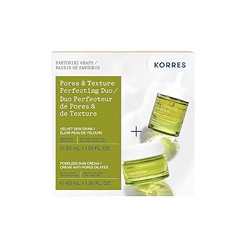 Refine skin from the first step with the KORRES Santorini Grape Duo Regimen Set, a complete skincare ritual designed to smooth texture and visibly minimize pores. This 2-piece set includes full-size bottles of the Velvet Skin Drink Face Oil (30ml) and Poreless Skin Cream (40ml), both formulated with antioxidant-rich Santorini grape extract sourced from volcanic ash-rich soil. The Velvet Skin Drink is a silky face oil powered by resveratrol, known for its ability to replenish hydration while smoothing the look of uneven skin. Lightweight yet nourishing, it’s perfect for prepping your complexion or wearing under your moisturizer. Follow with the Santorini Grape Poreless Skin Cream, infused with salicylic acid to help unclog pores and rebalance oil, leaving skin with a soft-matte, healthy-looking finish. Together, these two products deliver a pore-refining, texture-smoothing ritual suitable for all skin types—especially combination, oily, or dull skin. Vegan, cruelty-free, and made with sustainable ingredients and packaging, this set blends Greek botanicals with modern skincare science. Made in Greece with KORRES’ seed-to-skin commitment to natural, effective skincare.