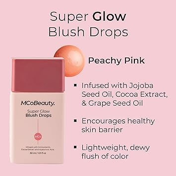 - VERSATILE GLOW: Whether you wear it alone, mix it with your favorite MCoBeauty products, or layer it over makeup, the Super Glow Blush Drops give you the freedom to create a radiant flush that suits your style and mood.