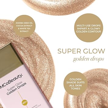 MCoBeauty Super Glow Golden Drops, Infused with Antioxidants, Cocoa Extract and Hyaluronic Acid, Light-Reflecting Pigments, Vegan, Cruelty Free Cosmetics