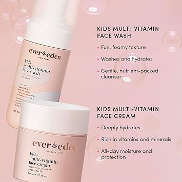 Evereden Kids Skincare & Sunscreen Essentials Set - Multi-Vitamin Face Wash, Face Cream & SPF 50 Mineral Sunscreen - Clean, Vegan, Non-Toxic Skincare for Kids 3+