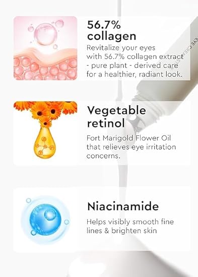 - Resilient Skin: Formulated with 56.7% collagen extract and plant-derived retinol, our eye cream nourishes and moisturizes delicate skin around the eyes, enhancing its resilience.