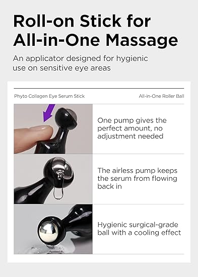 - Complete Skincare Solution: Our Phyto Collagen Eye Serum stick offers ten skincare benefits, targeting fine lines, dark circles, and concerns in the eye area, forehead, glabella, nasolabial lines, and neck for a firmer and more youthful appearance.