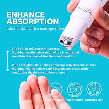 Re.SPN Peptide Firming Roller Eye Serum - For Puffy Eyes, Wrinkles & Dark Circles, Cooling Gua Sha Metal Applicator with Niacinamide, Vegan K-Beauty (0.67 fl oz)