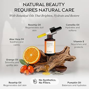 ZAAINA Extra Glow Face Serum - Hydrating Face Oil for Dry, Dull & Sensitive Skin - Lightweight Moisturizer & Natural Primer for Makeup - With Rosehip Oil, Pumpkin Seed & Vitamin E - 1oz Bottle