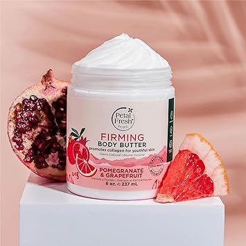 Petal Fresh Pure Firming Pomegranate & Grapefruit Body Butter, Organic Coconut Oil, Argan Oil, Shea Butter, Promotes Collagen, For All Skin Types, Natural Ingredients, Vegan and Cruelty Free, 8 oz