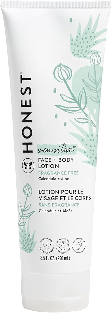The Honest Company Hydrating Face + Body Lotion | Fast Absorbing, Naturally Derived, Hypoallergenic | Fragrance Free Sensitive, 8.5 fl oz