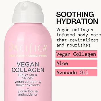 Pacifica Spray Lotion for Body - Vegan Collagen Body Milk Spray - Hydrating Moisturizer Mist Fast-Absorbing Instantly Hydrates & Softens Skin Jasmine & Vanilla Natural Scent Clean Beauty Non-Aerosol