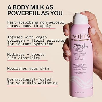 - INNOVATIVE SPRAY LOTION: This milky body moisturizer comes in a convenient spray form, making full-body hydration fast and easy. The fine non-aerosol mist absorbs in seconds, so you can spritz and smooth on lotion without any heavy rubbing. It’s perfect for those “lazy girl” skincare days when you want quick, even coverage.