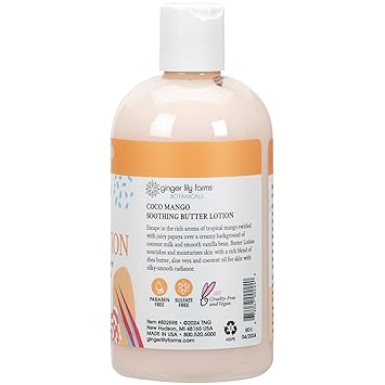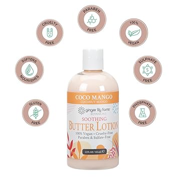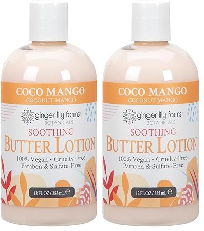 Ginger Lily Farms Botanicals Soothing Butter Lotion for Dry Skin, Coco Mango, 100% Vegan & Cruelty-Free, Coconut Mango Scent, 12 Fl Oz