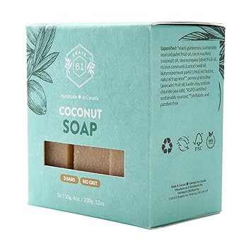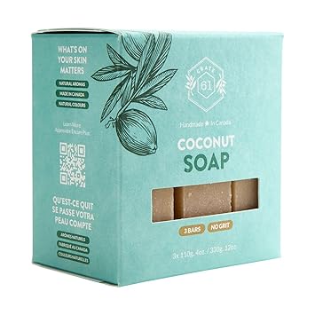 Crate 61 Organics, Handmade Vegan Natural Bar Soap Cold Pressed For Face And Body, With Premium Essential Oils, For Men And Women 3 Pack (Coconut)