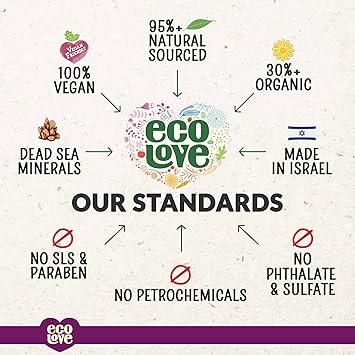 - NATURAL & ORGANIC INGREDIENTS: ecoLove Purple Collection Body Wash is free from SLS, parabens and petrochemicals. 95% nature-derived ingredients (30% organic). Enriched with essential oils, organic herbs & plant extracts and 26 Dead Sea minerals.