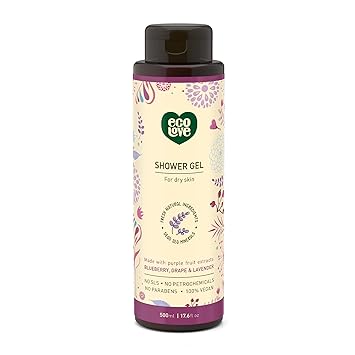 ecoLove - Natural Moisturizing Body Wash for Dry Skin - Organic Blueberry, Grape & Lavender - No SLS or Parabens - Vegan and Cruelty-Free Shower Gel, 17.6 oz
