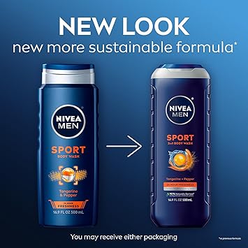 Get post-match fresh with NIVEA MEN Sport Body Wash. Formulated with Revitalizing Minerals, this NIVEA MEN body wash cleanses without drying and leaves skin feeling fresh and visibly healthy-looking. With a refreshing tangerine and pepper scent, this mens body wash provides long-lasting, 24-hour freshness, making it a great addition to your post-match routine. The 3-in-1 shower gel can be used as a face wash, shampoo and body wash. Plus, it is a vegan body wash (no animal-derived ingredients) that's free from microplastic particles, parabens, phthalates and dyes. This pH skin-friendly body wash is formulated with 92% naturally derived ingredients* and a 99% biodegradable formula**, plus it's packaged in a bottle made from 96% recycled plastic***, reflecting NIVEA's commitment to sustainability. Complete your men's skin care routine by pairing this body cleanser with NIVEA MEN Maximum Hydration Nourishing Body Lotion. *Naturally derived ingredients, including purified water, have undergone processing while retaining a majority of their natural molecular structure. 8% skin safe synthetics are included to maintain the integrity of the formula. **as per OECD or equivalent methods ***excluding label