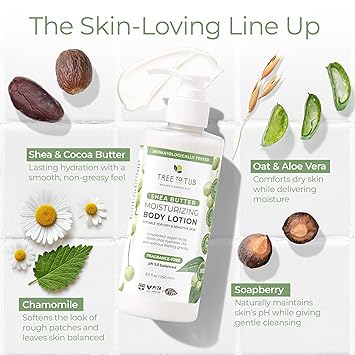 Tree to Tub Unscented Shea Butter Body Lotion for Dry Skin - Fragrance Free Lotion,Vegan Body Moisturizer, Good for Sensitive Skin for both Women & Men