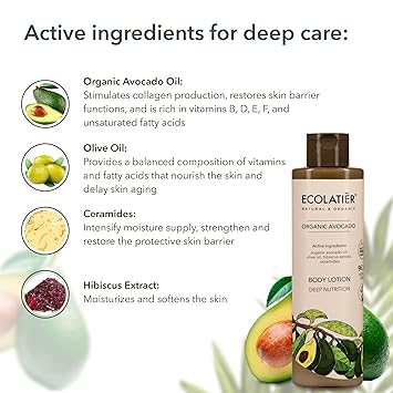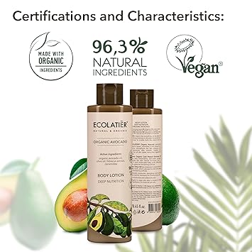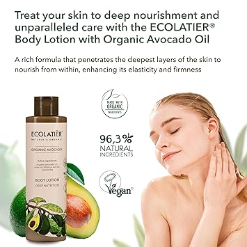 Body Lotion with Organic Avocado - Deep Nutrition, 96.3% Natural, Vegan Moisturizer with Avocado & Olive Oils, Hydrating Lotion for Dry Skin, 8.5 Fl Oz - ECOLATIER