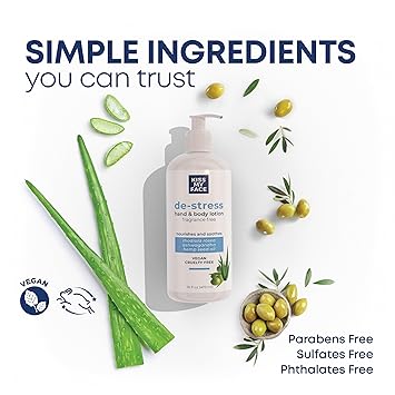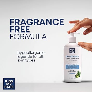 Kiss My Face De-Stress Hand & Body Lotion Fragrance Free - Hypoallergenic, Cruelty-Free, Vegan Lotion for Dry Skin - 16 oz Bottle with Pump (Fragrance Free, Pack of 1)
