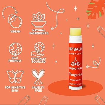 - Use as a soothing vegan, lip gloss, lip balm, as a nighttime lip mask, or night balm. All day, healing, ALIDA PURE sweet, and tangy, Tangerine Lip Balm, nourishing moisture, and protection, for severely dry, cracked, or chapped lips. Each .15-ounce lip balm is enclosed in materials that prioritize sustainability.
