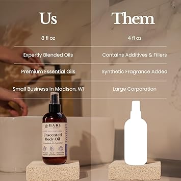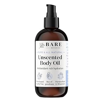 BARE BOTANICS 8 oz Moisturizing Unscented Body Oil - 100% Pure & Natural for Skin & Nails - Perfect for Moisturization - Vegan, Cruelty Free & Naturally Scented Hair Oil