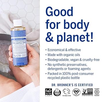 - MADE WITH ORGANIC OILS & CERTIFIED FAIR TRADE INGREDIENTS: Dr. Bronner's Pure-Castile Magic Soap are made with over 70% certified organic & fair trade ingredients—an ethical, sustainable choice and a gentle peppermint castile soap for all!