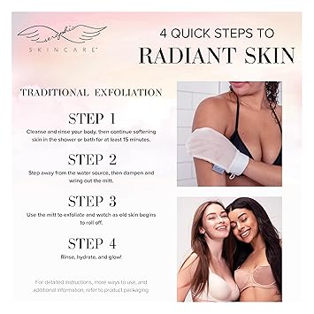 - BETTER THAN LOOFAHS OR CHEMICAL EXFOLIANTS - Loofahs and chemical exfoliants don’t have the skin-gripping power of our Divine Glow exfoliator glove, meaning they’re just not as effective at removing dead skin. Our body mitts are certified vegan and Halal, offering a naturally effective alternative - they’re rough enough to deeply exfoliate while soft enough to buff and smooth. Plus, our product packaging includes step-by-step instructions for customized results!