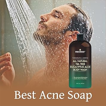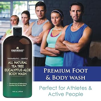 First Botany, ALL Natural Body Wash - Fights Body Odor, Athlete's Foot, Jock Itch, Nail Issues, Dandruff, Acne, Eczema, Shower Gel for Women & Men, Skin Cleanser -16 fl oz (Tea Tree Eucalyptus)
