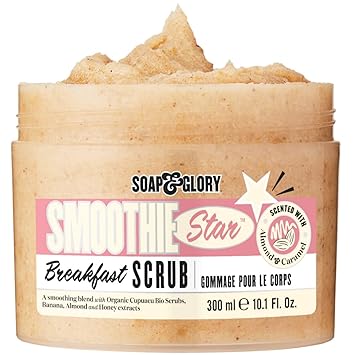 Soap & Glory Smoothie Star Exfoliating Body Scrub - Buff & Smooth Skin - Almond & Caramel Scented Vegan Body Polish - Brightening Scrub with Honey Extract + Sweet Almond Oil (300ml)