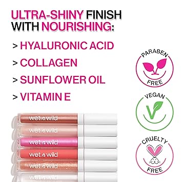 wet n wild MegaSlicks Lip Gloss, Ultra-Glossy, Vitamin-E Enriched, Ultra-Gloss High Shine Moisturizing, Cruelty-Free & Vegan - Crystal Clear