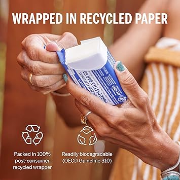 - PACKAGED IN POST-CONSUMER RECYCLED WRAPPERS: Every castile soap bar is wrapped in recycled paper, helping reduce landfill waste. Our packaging supports a circular economy and cleaner planet