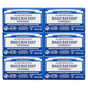 Dr. Bronner's Pure-Castile Magic Bar Soaps (Peppermint, 5oz, 2-Pack) - Made with Regenerative Organic Certified Oils, Soap Bars for Men & Women, Gentle for Face & Body, Vegan, Non-GMO