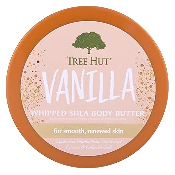 Whip your skin's hydration back into shape without the heavy feeling of traditional body butters with Tree Hut Vanilla Whipped Shea Body Butter! This lightweight, airy formula is packed with Shea Butter, Vanilla, and Colloidal Gold to deeply nourish and hydrate your skin. It absorbs quickly with a non-greasy feel, leaving your skin soft, smooth, and glowing. The warm, creamy scent of smooth vanilla, warm sandalwood, and coconut cream adds a touch of indulgence to your skincare routine, making it the perfect gift for women who deserve a little extra pampering. Tree Hut Whipped Shea Body Butters are alcohol-free, formaldehyde-free, gluten-free, paraben-free, sulfate-free, and vegan. After showering or bathing, or anytime you want to hydrate and refresh, apply to dry skin and massage thoroughly for soft, smooth skin. Tree Hut believes that everyone deserves to take time in their day to feel good, even if it's just in the shower or bath. From our Shea Sugar Scrubs and Body Lotions to our Fragrance Mists and Body Washes, we craft delicious and delightful beauty products with exceptional quality.