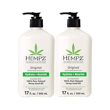 Hempz Original, Natural Hemp Seed Oil Body Moisturizer with Shea Butter & Ginseng, Pure Herbal Skin Lotion for Dryness, Nourishing Vegan Cream, Floral and Banana, 17 Fl Oz, 2 Pack