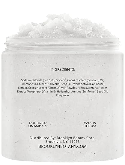 Brooklyn Botany Coconut Milk Body Scrub - Moisturizing and Exfoliating Body, Face, Hand, Foot Scrub - Fights Stretch Marks, Fine Lines, Wrinkles - Great Gifts for Women & Men - 10 oz
