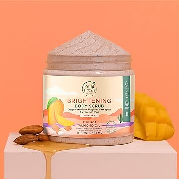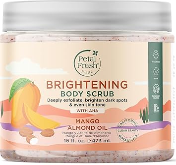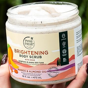 Petal Fresh Pure Brightening Mango & Almond Oil Body Scrub, AHAs for Gentle Exfoliation, Even Tone & Radiant Glow, Vegan and Cruelty Free, 16 oz - MADE IN USA