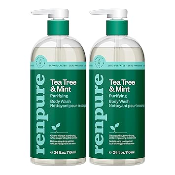RENPURE Tea Tree & Mint Body Wash - Cleanses, Invigorates & Refreshes Skin Without Over-Drying - For All Skin Types - Tea Tree Leaf Oil, Spearmint Leaf Oil - 24 Fl Oz each, 2 Pack