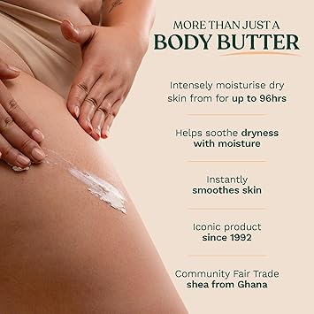 Protect and nourish very dry skin like never before with our new and improved Shea Body Butter. Now made with 97% ingredients of natural origin, including handcrafted Community Fair Trade shea butter from Ghana and Community Fair Trade babassu oil from Brazil, our body moisturizer leaves seriously dry skin feeling softer, smoother and intensely nourished with 96hr moisture. It even gives you a natural-looking glow. This super creamy Body Butter now comes in recyclable packaging* made with an aluminium lid and 100% recycled plastic tub, including Community Fair Trade recycled plastic from India. This means you can love your planet every time you love that beautiful body. Slather on our non-sticky, non-greasy moisturizer sparingly or generously. Seriously. Loving yourself never felt this good.