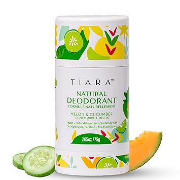 TIARA All Natural Deodorant for Women & Men - Aluminum Free Deodorant, Safe for Kids & Whole Body Use - Paraben & Chemical Free Organin, Vegan and Non-Toxic, Travel Size (Melon & Cucumber)