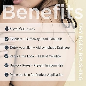 Hydrea London Dry Brushing Body Brush with Cactus Bristle - Cellulite Remover, Vegan Best Dry Brush for Flawless Skin, Helps Improve Lymphatic Drainage - FSC® Certified Beechwood.